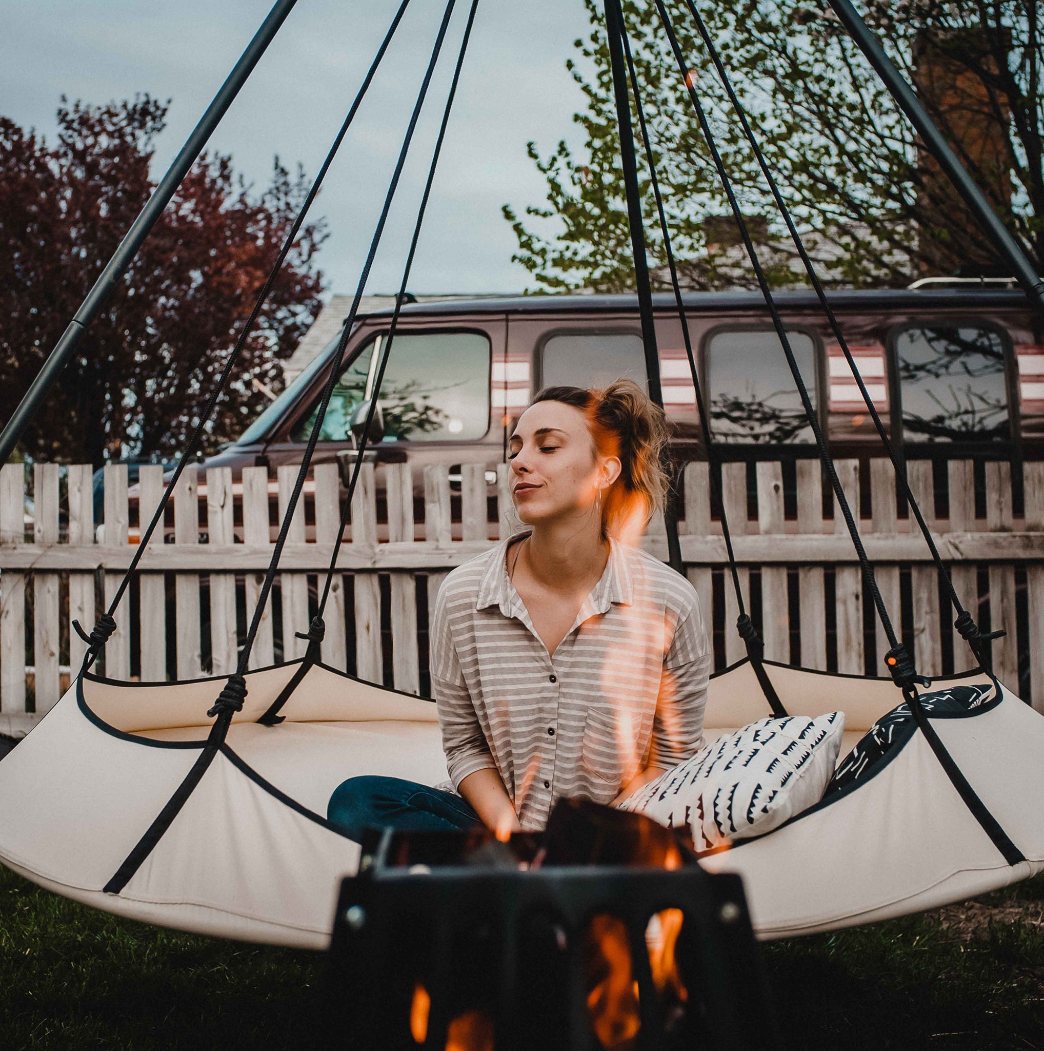 Hang your Pod straight from a branch, from your ceiling, or from one of our conical Hangout Stands.